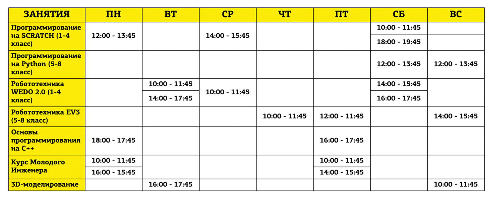 Программирование на Python, Программирование SCRATCH, Робототехника WeDo, Робототехника EV3